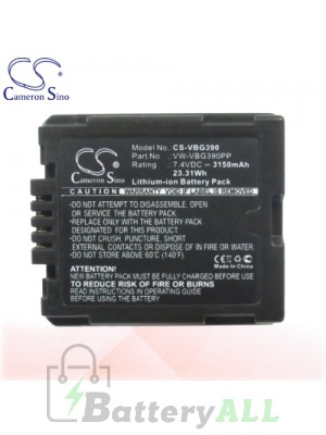 CameronSino Battery for Panasonic HDC-TM20K8 / HDC-TM20R / HDC-TM20S Battery 3150mah CA-VBG390