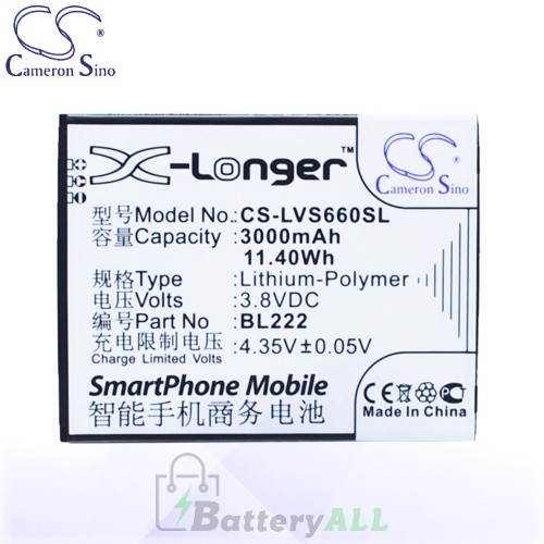 CS Battery for Lenovo BL222 / Lenovo S660 / Lenovo S668T Battery PHO-LVS660SL